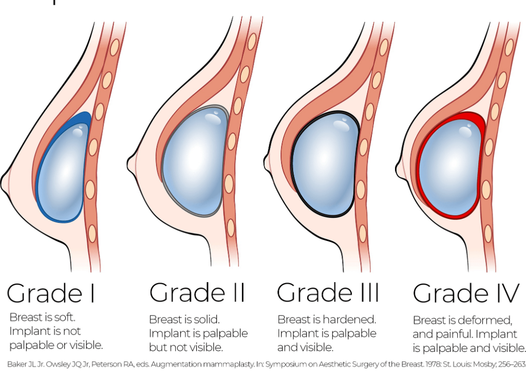 Capsular contracture can result in varying degrees of firmness and visual alteration. In severe cases, the condition may cause the breast to feel hard, appear misshapen, or develop a spherical “ball-like” look. This tightening of the capsule is graded to determine the severity.